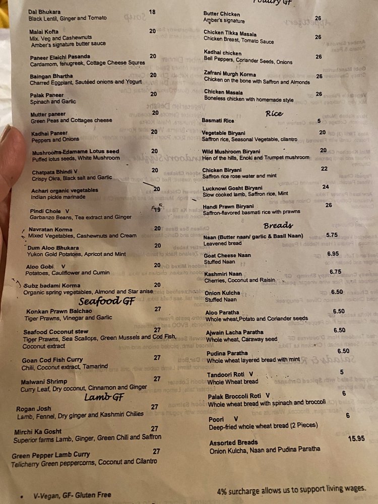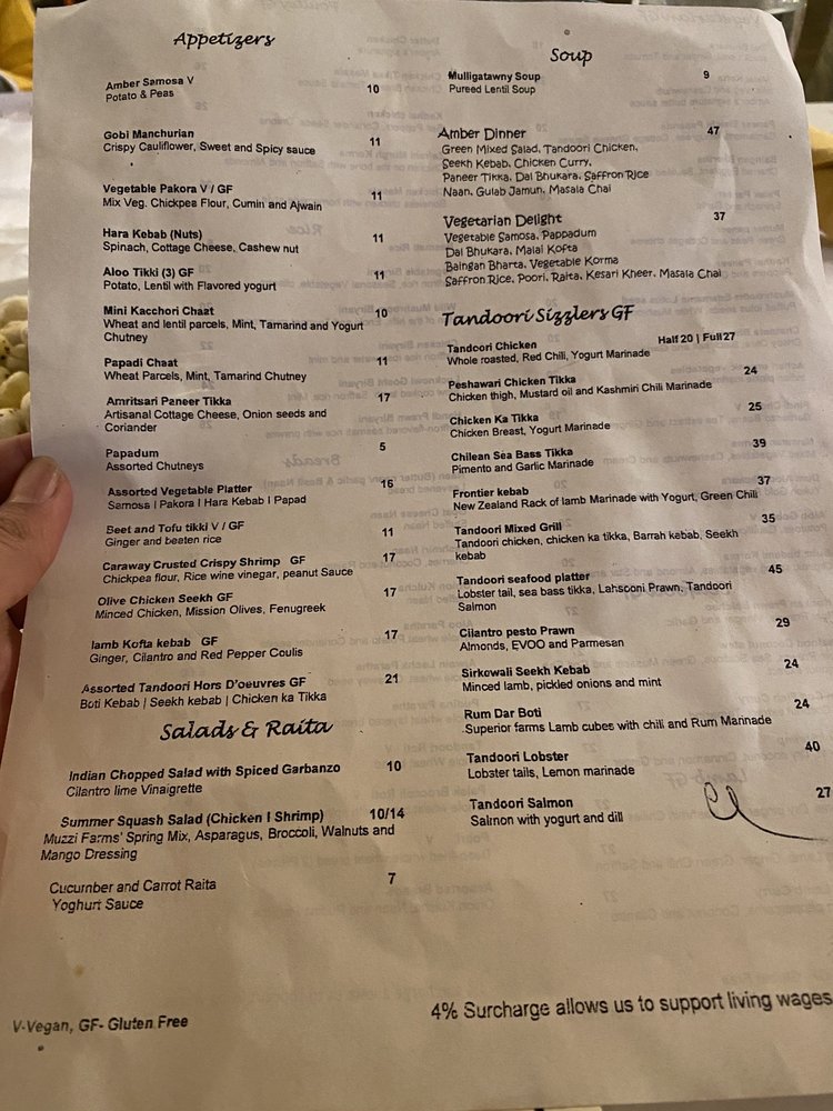 Amber India, a popular Indian restaurant in Los Altos, CA, offers a wide range of vegetarian and non-vegetarian dishes. Their menu includes flavorful vegetarian appetizers like Samosa Potatoes, Gobi Manchurian, and Mix Veg Pakora. For non-vegetarian options, they serve Tandoori Chicken, Chicken ka Tikka, and Za'atar Chicken Tikka. The chef's salads, like the Crispy Sonoma Cabbage and Noodle Salad, are a refreshing choice. Customers rave about the exceptional food, attentive service, and spacious ambiance. The Butter Chicken, Paneer Tikka, and Chicken Biryani are must-try items. With vegan options clearly marked on the menu, customers appreciate the variety and quality of the dishes. Amber India's dedication to serving delicious Indian cuisine in a welcoming environment makes it a top choice for gatherings and special occasions.